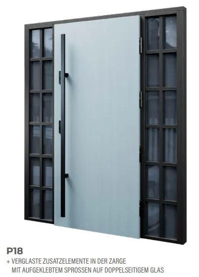 - jede Tür kann durch festverglaste oder massive Zusatzelemente in der Zarge weiter vergrößert werden