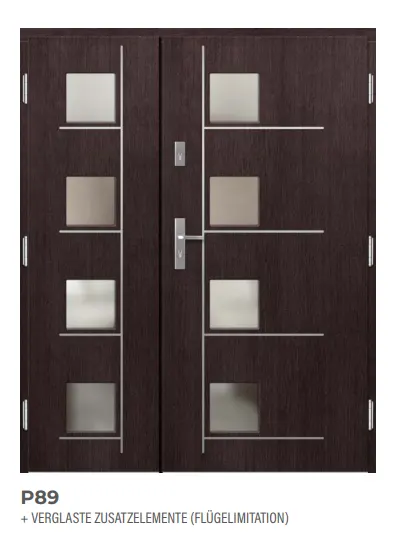 - die zulässige Größe für einen glatten Flügel beträgt 150 cm x 300 cm und für Türen mit Glas und Fräsungen 120 cm x 300 cm