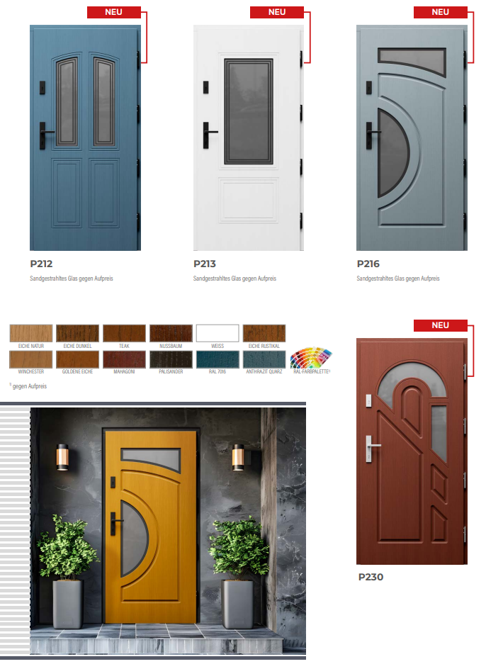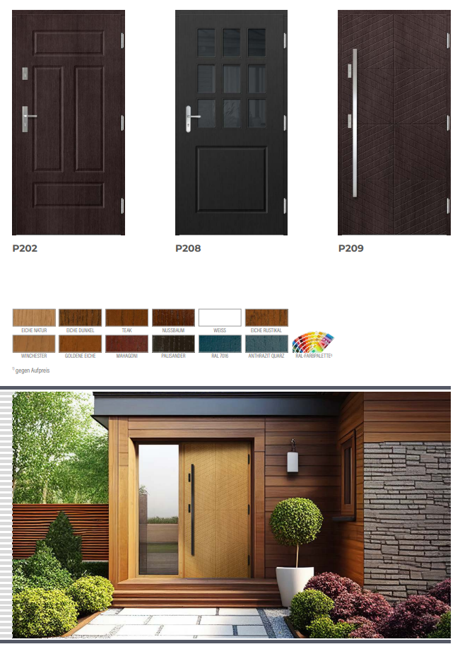 In unserem Sortiment finden Sie hochwertige Haustüren aus robusten Materialien wie Holz, Stahl und Aluminium.