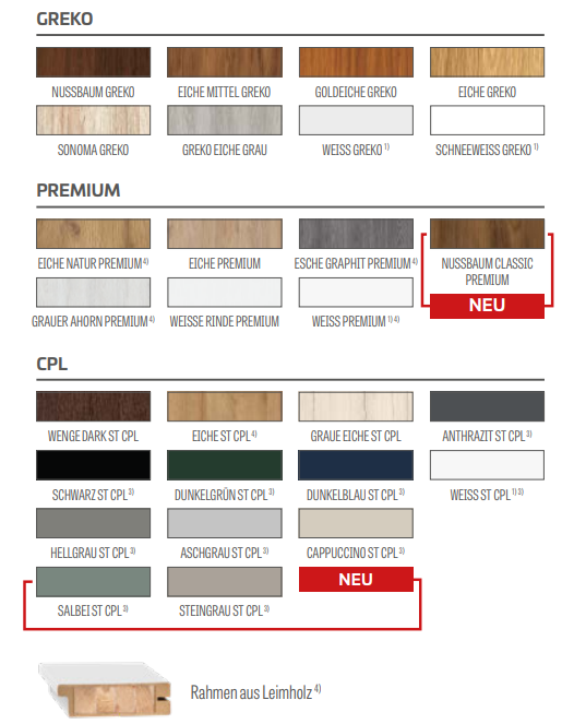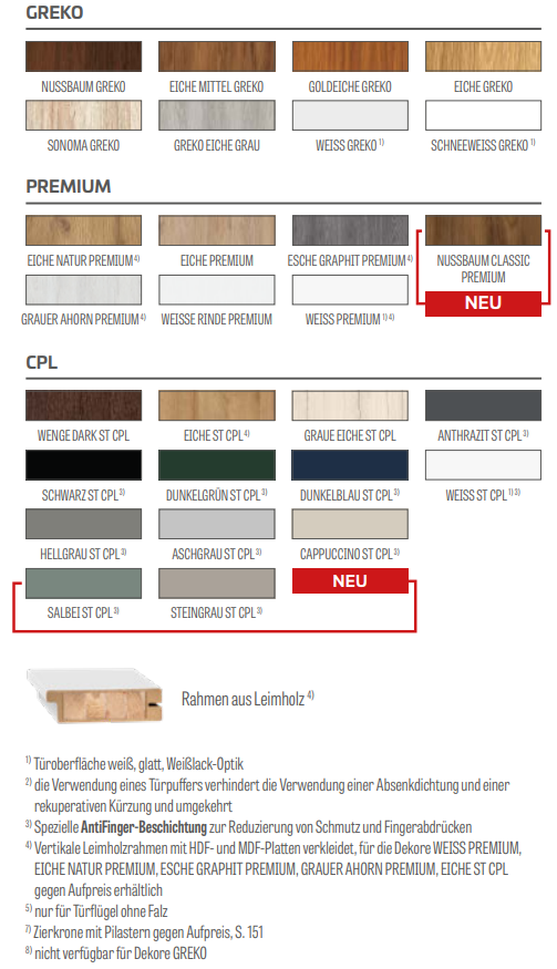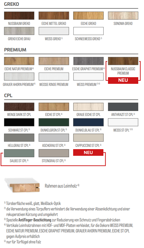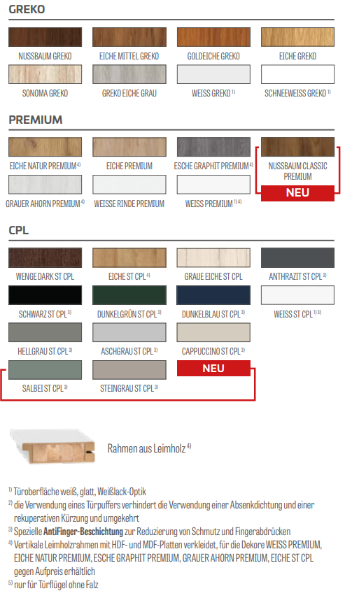 • Türfüllung aus HDF-Platten, 4mm stark, mit GREKO-, CPL- oder PREMIUM-Oberfläche