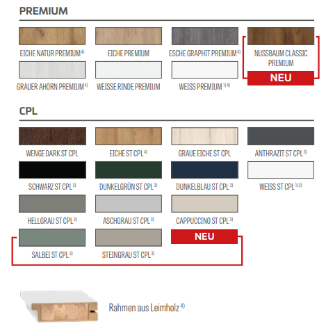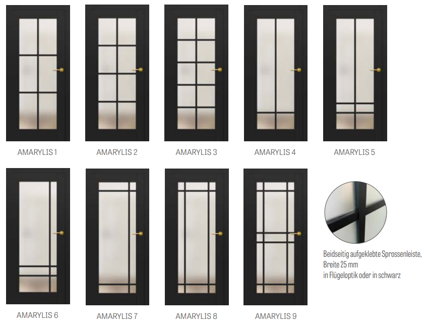 • optionaler Wechsel des Sprossendekors auf die Farbe SCHWARZ ST CPL unabhängig