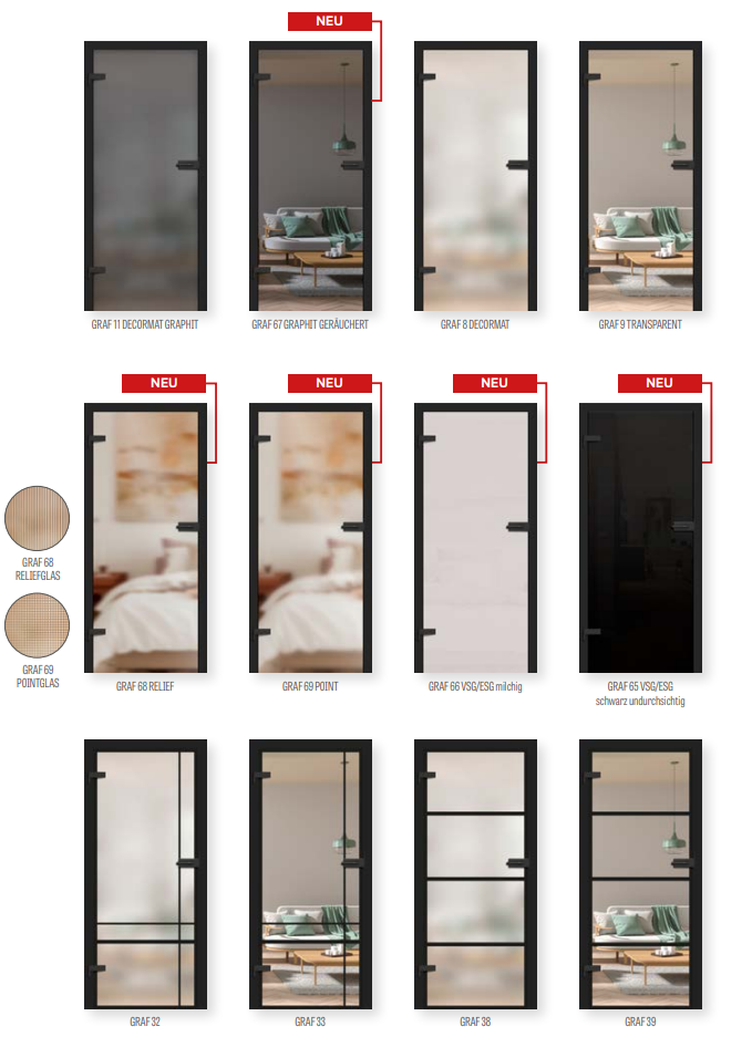 ACHTUNG: Die vergrößerte Kollektion unserer Glastüren und eine Übersicht über die