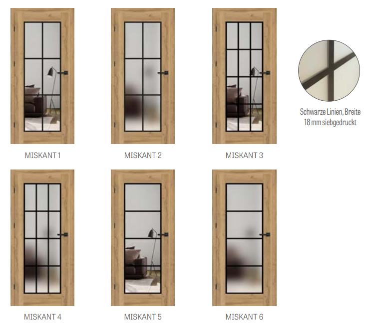 • Einscheibenglas milchig (MISKANT 2, 4, 6) oder transparent (MISKANT 1, 3, 5), Stärke
