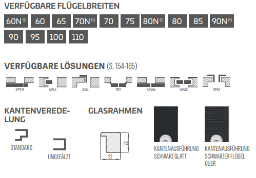 • Türflügel mit Falz, Flügel ohne Falz oder gegen Aufpreis Reverse-Flügel in Konstruktion